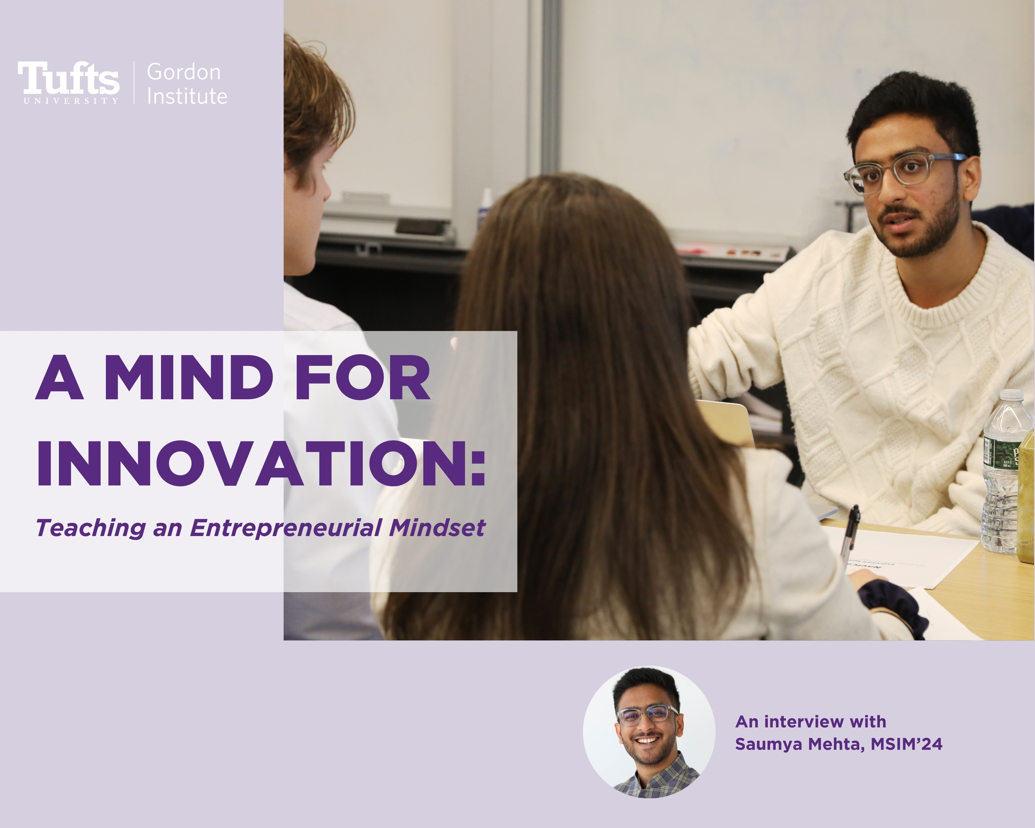 The range of offerings at Tufts Gordon Institute creates multiple opportunities for student experiences starting at an introductory level, and then providing deeper and deeper experiences with each additional program a student may pursue. For Saumya Mehta, MSIM ‘24, this kind of cross-sectional journey has been transformational. After earning an undergraduate degree in Engineering Psychology at Tufts, Saumya looked to the MS in Innovation & Management (MSIM) program to tie together what he had learned during his undergraduate studies with practical skills in innovation and leadership to take the next step in his career.